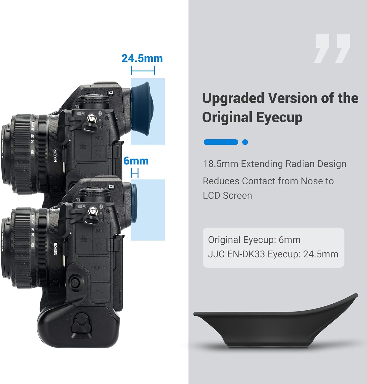 - 【Oval Shape & Extension Design】:Ergonomic oval shape design, comfortably fits eyes to camera.Upgraded version with an extension of 21.9mm for improved viewfinder optics and reduces the contact from nose to the LCD screen.