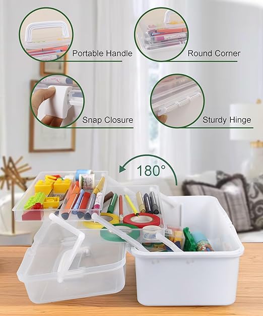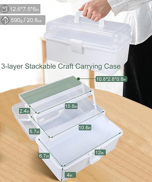 - Multi-functional Craft Box: Features 3 layers and 4 different space sizes, the art box is ideal for well-organized small items like jewelry, crafting supplies, office supplies, or small tools; Can be your sewing box, art & craft box, tool box, medicine box, and make up case.