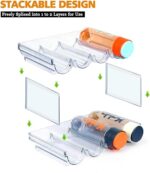 - ✅【Save Space 】- Pack of 2 sets, water bottle holder racks can be used separately or stacked. Stack the racks in an easy way to create vertical storage, the shelves can be firmly stacked on top of each other for maximum space utilization. The containers placed on a shelf stay in place and do not roll around. Easily pull out or push in bottles for accessibility. Keep your freezer, cupboards and pantry organized with this storage set.