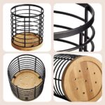 WDT Tool Utensil holder for Kitchen Counter – 5.2″ x 5.2″ x 6″ Large Round with Wooden Base Matte Black Cooking Utensil Holder Utensil Organizer (Metal+Bamboo)
