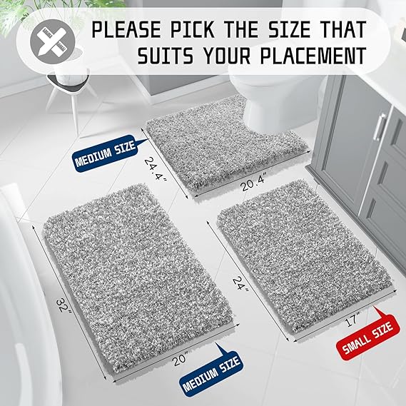- [ ULTRA-ABSORBENT & QUICK-DRYING ] Our plush bath rugs for the bathroom showcase a dense pile of absorbent fibers that effortlessly soak up water. Step onto the mat with confidence right after your shower, preventing any water from being tracked onto your bathroom floor. The high-density material excels not only in moisture absorption but also in providing a cushioned haven for your feet, ensuring warmth and coziness even on the coldest tiles