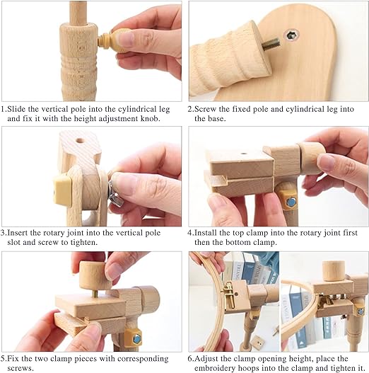 Before the auxiliary embroidering tool, you have to hold hoops and flip it from time to time to while stitching, which is laborious and give too much strain to muscles and joints like wrists and shoulders. With this wooden stand, you can embroider longer at ease.
