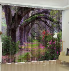 Green Garden and Slate Road Printed 2 Panels Decorative 3D Curtain (118W*106″L)