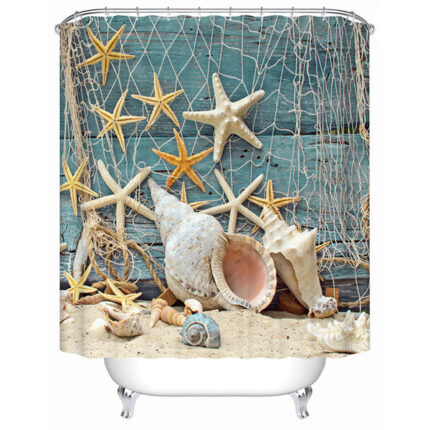 3D Sea Snail and Starfish Seashell Printed Polyester Bathroom Shower Curtain