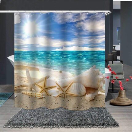 3D Starfish and Blue Sea Landscape Waterproof and Mildewproof Polyester Shower Curtains