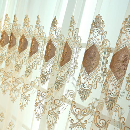 Vintage Embroidery Tulle Blackout Noble Sheer Curtain for Living Room Bedroom Window Decor Custom 2 Panels Drapes Breathable Voile