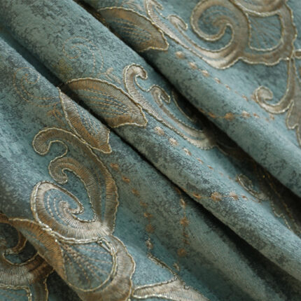 Vintage Black Out Embroidery Teal Curtains for Living Room Bedroom Window with Classy Durable Chenille Physically Blocks (84W*63″L